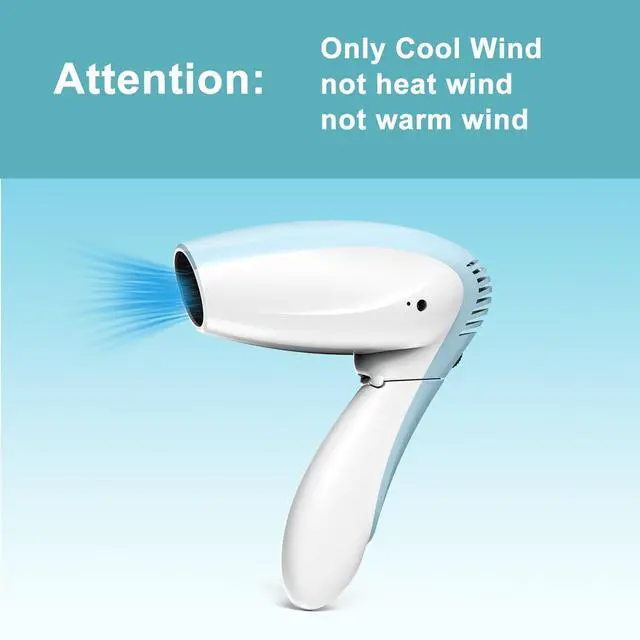 Cold Air (No Hot or Warm Air): Designed specifically for your hot summer travel. It can be used on the beach or by the swimming pool to dry your hair while keeping you cool. You can also dry oil paintings and other works, or bring coolness to your pet outdoors and indoors. Because it does not heat or cool the airflow temperature. So the wind blown out is only the natural temperature of the environment it is in. But this blow dryer is gentle and safe use, making it ideal for infants, men, and oil painting projects. The 32W power avoids any heat damage to your hair, keeping it healthy and protected.