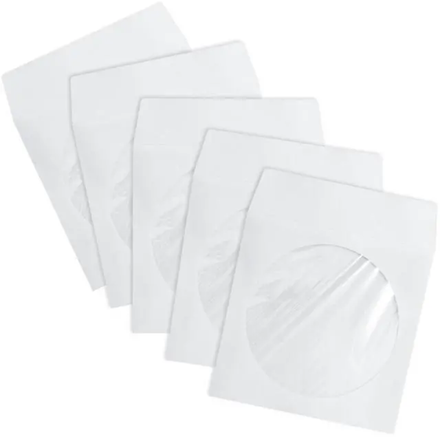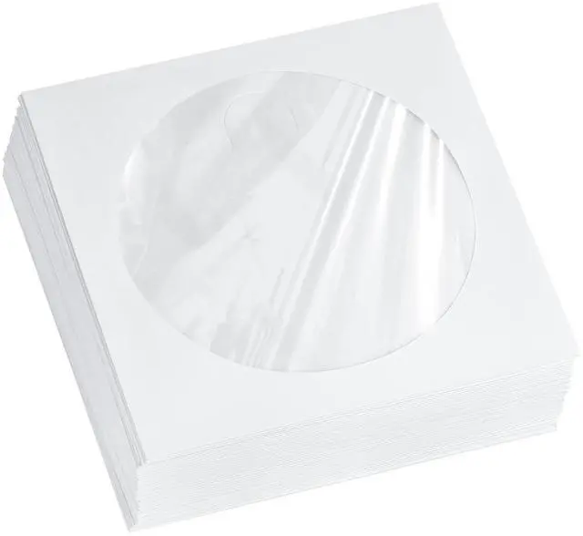 Thick White Paper CD, DVD, Disc Sleeves Envelope with Clear Window and Flap, 100gsm CD Sleeve Cases Paper Envelopes Holder for Media Storage, Pack of 50