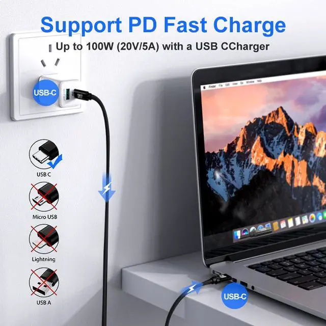 Supports 100W fast charging, data transfer up to 20Gbps.1is suitable for any USB C device from laptop, tablet to smartphone as well as wireless Bluetooth headphones