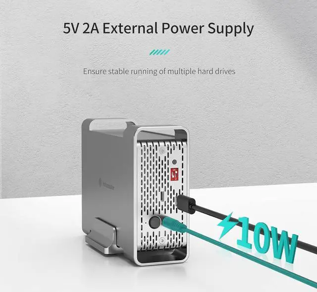 5V/2A Power SupplyThe hard drive enclosure is equipped with a 5V/2A external power adapter, ensuring stable operation of data access and transmission. We provide 18 months warranty and lifetime tech support for our products.