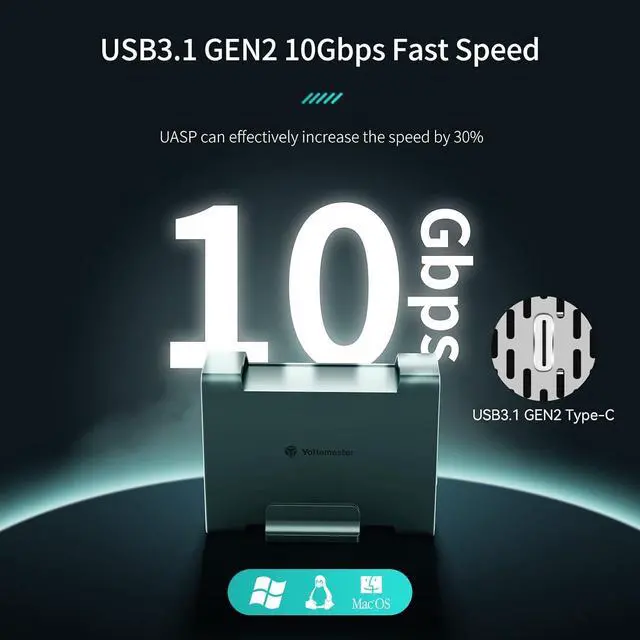 10Gbps Transfer Speed, 8TB Storage CapacityYottamaster 2 bay raid hard drive enclosure supports USB 3.1 Gen2 10Gbps transfer rate, and supports UASP protocol which will accelerate 20% of transfer speed. Install 2 hard disks into the hard drive case, you will get up to 8TB (4TB for a single disk) storage capacity, which is a solid solution for data backup, music library, video and photo editing.