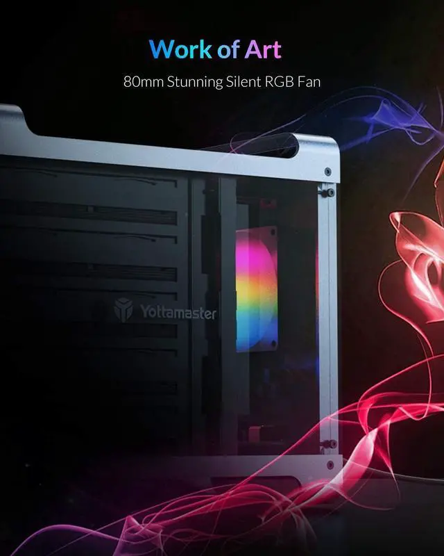 See A Visually Stunning WorldA 80mm RGB Silent Fan is located between the Translucent Frames on both sides. Lights will auto-changed from one color to the next, blursing the line between fiction and reality, and creating deepper gaming immersion. The main frame built by unibody aluminum. The large fan help to pull out the hot air from inside the enclosure, keeping the the hard drive cool during long hours of operation.