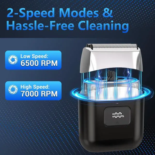 Dual-Speed Modes: YOXSPD mens electric razors for shaving face offer two customizable speed settings to match your grooming preferences. Use the low setting for gentle daily maintenance, or switch to high for a more powerful and efficient shave. This versatile portable shaver for men delivers exceptional performance with enhanced comfort and precision, ensuring a smooth and personalized experience.