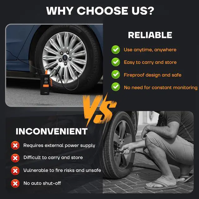 This car tire pumo is built with a PC/ABS fireproof casing and smart chip,which not only prevents overheating protection, but also automatically shuts of infation wher full of air, ensuring rapid inflation while accurately stopping.