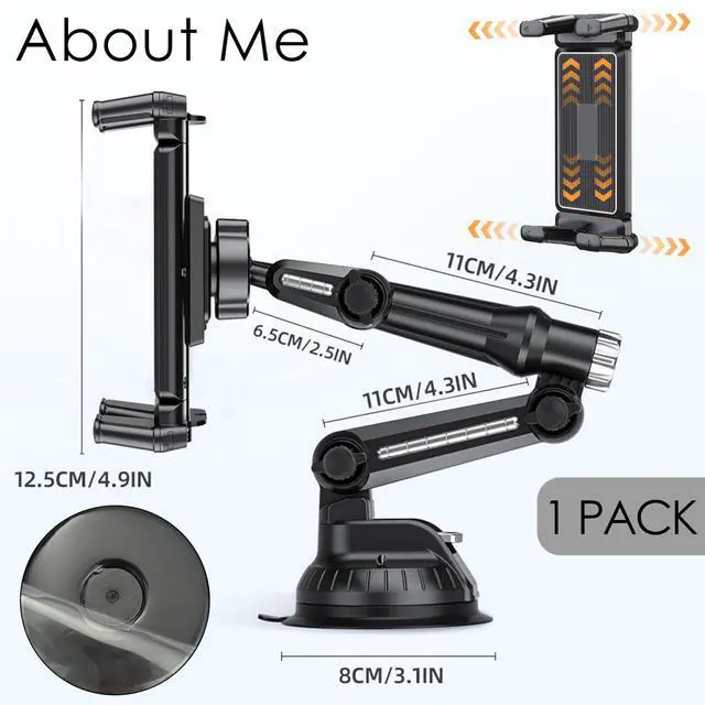 Upgraded 5 in 1 Mounting ArmUnobstructed View: Adjustable Dashboard/Center Console/Windshield Installation for Safer DrivingFeaturing an upgraded 5 in 1 mounting arm, this holder ensures a completely unobstructed view of the road. The arm can be adjusted up and down and securely locked to perfectly adapt to various vehicles. Coupled with a 360-degree swivel ball head, it allows effortless switching between landscape and portrait modes for both navigation and entertainment.