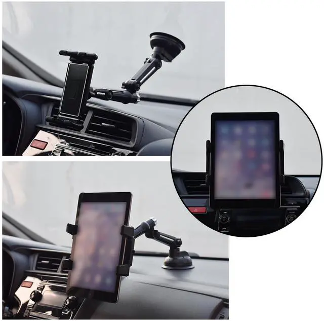 5 in 1 Tablet Holder for Car, Windshield+Dash Car iPad/Phone Mount with Strong Suction Cup & Large Clamp, for Most Phones and Tablets, for Driver & Front Passenger, Adjustable, Upgrade (Black)