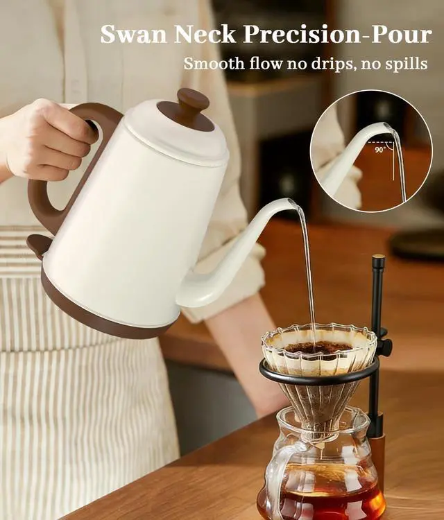 A retro-chic electric gooseneck kettle that blends precise performance with timeless charm. The YTLAD electric kettle gooseneck features a sleek tapered gooseneck spout, designed for steady, controlled pouringperfect as a pour over coffee kettle for pour-over coffee brewing and delicate tea steeping, ensuring every drop enhances your beverages flavor.