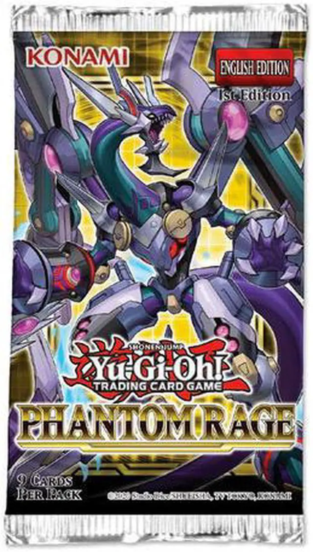 From Yu-Gi-Oh! expansion Phantom Rage, this listing is for a single booster pack new, sealed. Random Selection, each booster pack contains 9 cards, randomly inserted.