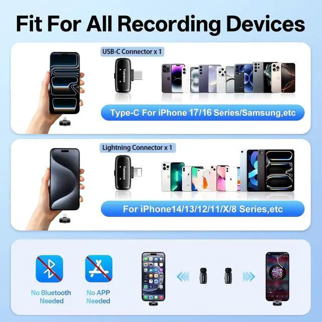 | Included Components | Microphones x2, USB-C Receiver x1, Lightning Receiver x1, Charging Case x1, USB Type-C Charging Cable x1, User Manual x1 |