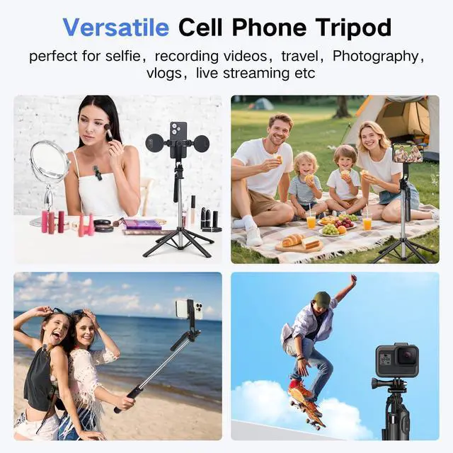 Cell Phone Tripod with Detachable Wireless Re.mote --Selfie tripod with independent re.mote control.The re.mote control can be recharged in cycles, reducing b*attery replacement.The range of the wireless connection can be up to 33 feet/10 m. It quickly pairs with your phone, allowing you to operate the selfie stick by simply pressing the shutter button. Whether you need a close-up self-portrait or want to capture a wider landscape, this versatile tool has you covered.