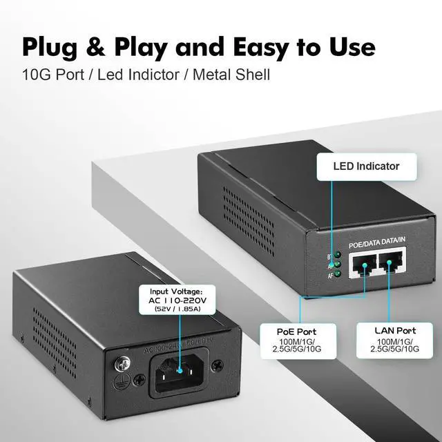 Both the input and output port are 10 gigabit speed, ensure faster and more reliable connections for all devides. Delivering power up to 100 meters (328ft.), perfect for IP cameras or access point deployment in large areas.