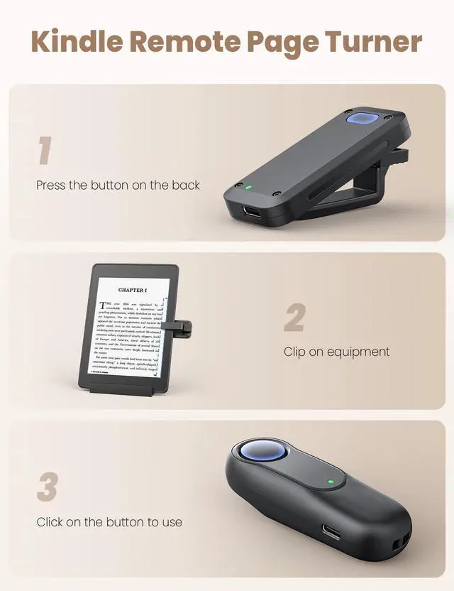 USB-C Port: universal charging port, you do not need to add more charging devices, rechargeable battery, carbon reduction and environmental protection, reduce the burden of use. Our kindle page turner is fully charged in 1.5 hours and can be used for weeks.