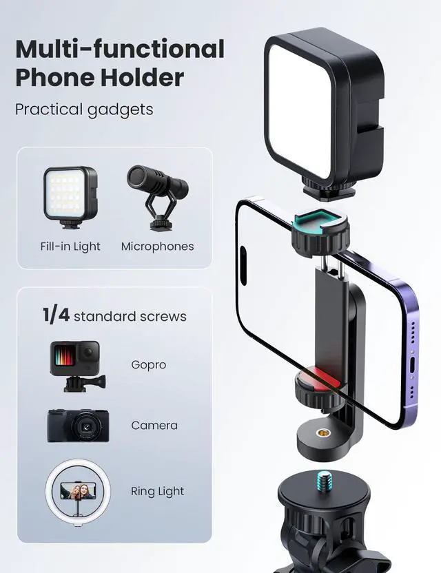 Swift and Simple Installation: Installing our phone clip is a breeze. Whether you're in a hurry to set up for a vlog, attach it to a tripod for a quick self - portrait session, or mount it on your bedside table for hands - free video calls, the straightforward design allows for easy and rapid attachment. No more fumbling with complex mechanisms; get your phone ready for use in seconds.