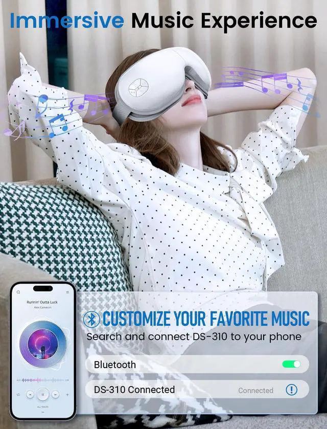 Sync with your favorite relaxation playlists or meditation apps via wireless Bluetooth connectivity. The dual built-in HD speakers (with zero electromagnetic radiation) create a private music while shielding your eyes from blue light exposure during sessions.