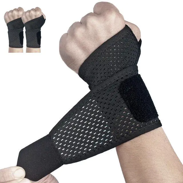 Experience superior wrist support and comfort with this premium compression wrist brace. The breathable design features strategic mesh panels that help maintain optimal airflow during intense workouts while providing firm stabilization. This black wrist support offers targeted compression to help reduce strain during exercise, sports activities, or daily tasks. The flexible yet supportive construction allows for natural range of motion while maintaining proper wrist alignment. Its sleek profile fits comfortably under workout gear or everyday clothing, and the moisture-wicking fabric helps keep your wrist dry during physical activity. The versatile design works for either left or right wrist and can be easily adjusted for a custom fit. Perfect for weightlifting, typing, or any activity requiring wrist stability. The durable materials ensure long-lasting performance while the compression helps promote circulation and support. Available in black, this wrist brace combines functionality with comfort for reliable wrist protection during your most demanding activities.