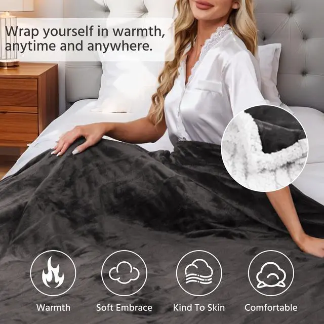 - Easy-to-Use & Perfect Giftable: With a simple LED controller and intuitive display, this heated blanket is easy to operate for all ages, especially seniors. Available in multiple sizes (50x60in to 90x100in) to fit different needs. Comes gift-ready the ideal thoughtful gift for Christmas, birthdays, or winter warmth. It provides soothing comfort thats appreciated by everyone, especially during cold seasons.