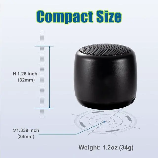 Weighing only 2.1 oz, and sized only slightly bigger than a quarter (1.2 diameter), this mini bluetooth speaker is the ultimate convenience. Slip the best tiny bluetooth speaker into your pocket with ease and stop carrying around bulky and heavy portable bluetooth speaker. It fits in the palm of a hand, slips easily into any pocket or purse!