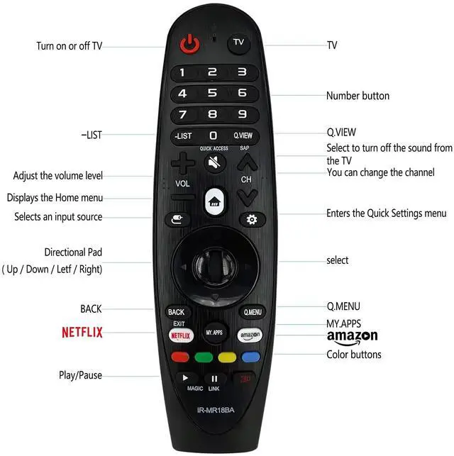 Enhanced Control: With its intuitive design and user-friendly interface, this remote control allows you to effortlessly navigate through your LG Smart TV. Say goodbye to juggling multiple remotes and enjoy the convenience of controlling all your TV functions with just one device.