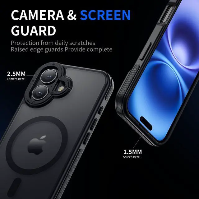 ![Alt view image 4 of 6 - Strong Magnetic for iPhone 16 Case [5X Military-Grade Shockproof for iPhone 16 Phone case] Compatible with fit MagSafe Translucent Slim Thin Case for iPhone 16-6.1'', Black Bumper](https://c1.neweggimages.com/productimage/nb640/C5JMD26032403RGDR61.jpg)