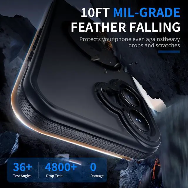 This iPhone 16 shockproof case with internal cushions corners survived more than 6,000 times 13FT drop tests, disperse 99% of impact force and is verified by the military standard.