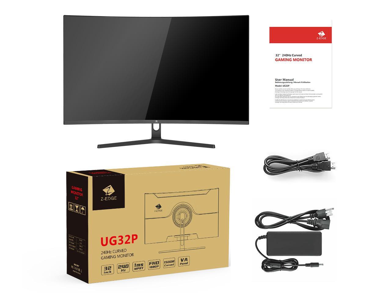 Z-EDGE 32 inch 1080P Full HD 1920 x 1080 240 Hz 1 ms Curved Gaming Monitor, FreeSync Compatible, HDMI + DP, Support Wall Mount 75x75mm