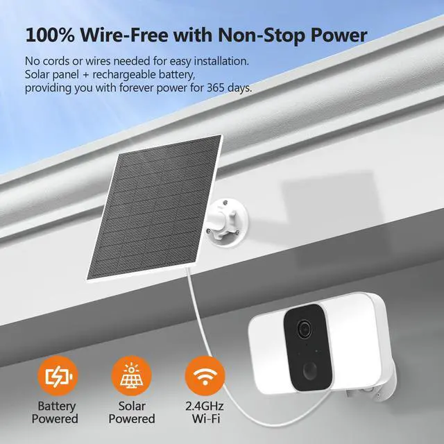 8). The solar panel continuously provides power converted from sunlight to the built-in battery, so you don't have to worry about recharging the battery.