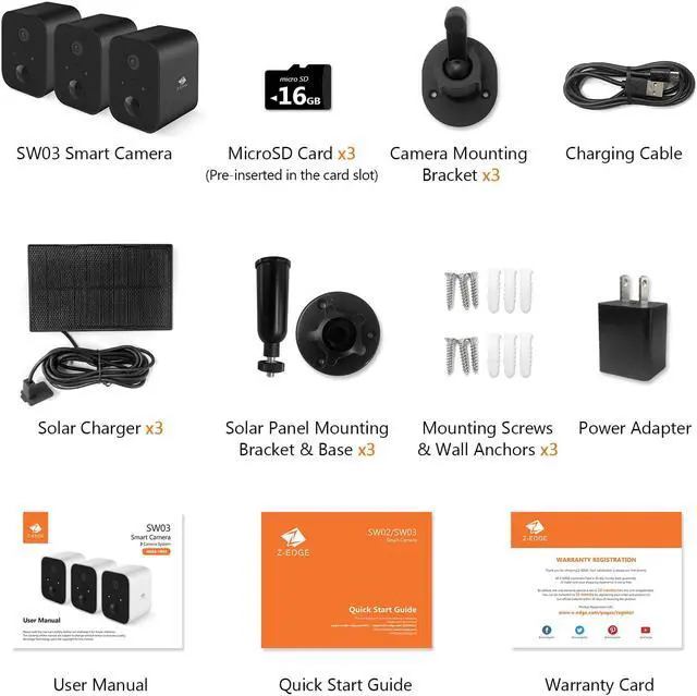 (3) SW03 Smart wireless cameras with 16GB Micro SD pre-installed
