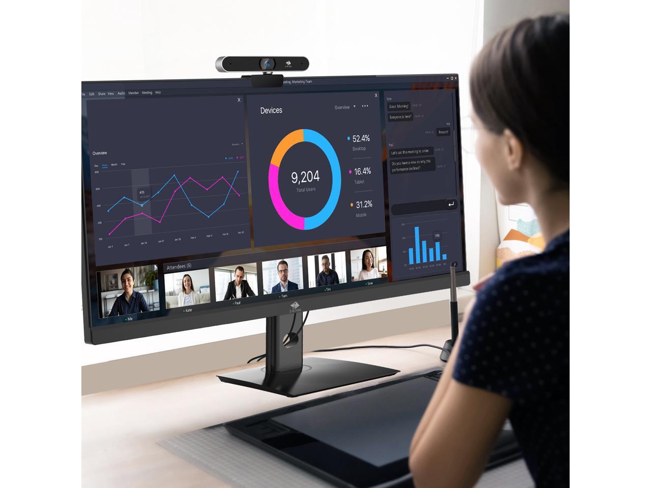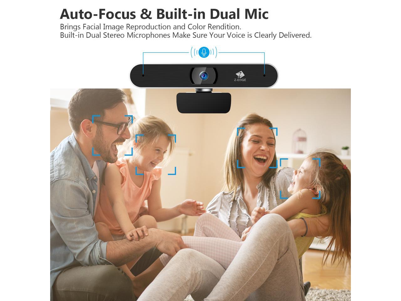 Z-EDGE ZW511 Full HD 1080P Webcam Auto Focus Web Camera for PC/Desktop/Laptop, Built-in Dual Stereo Microphone, Plug & Play, Compatible with Windows/Android/MAC OS