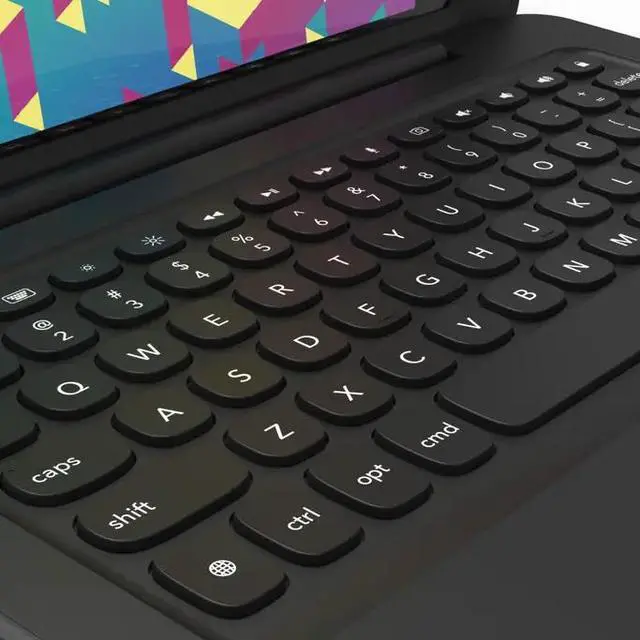 The interlocking keys won’t pop off with repeated use, and it has a snap-on screen protector, and the keyboard and case detach to accommodate different use environments.