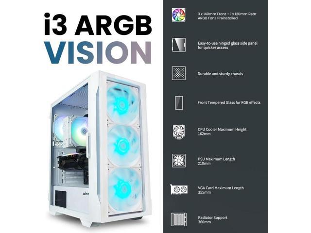 [I3 Neo TG Case] Hinged tempered glass side panel with 4 x 120mm Infinity Mirror ARGB Fans Pre-installed, 360 Rad front mount compatible, 2 x USB 3.0, USB 2.0 Power & Reset Buttons