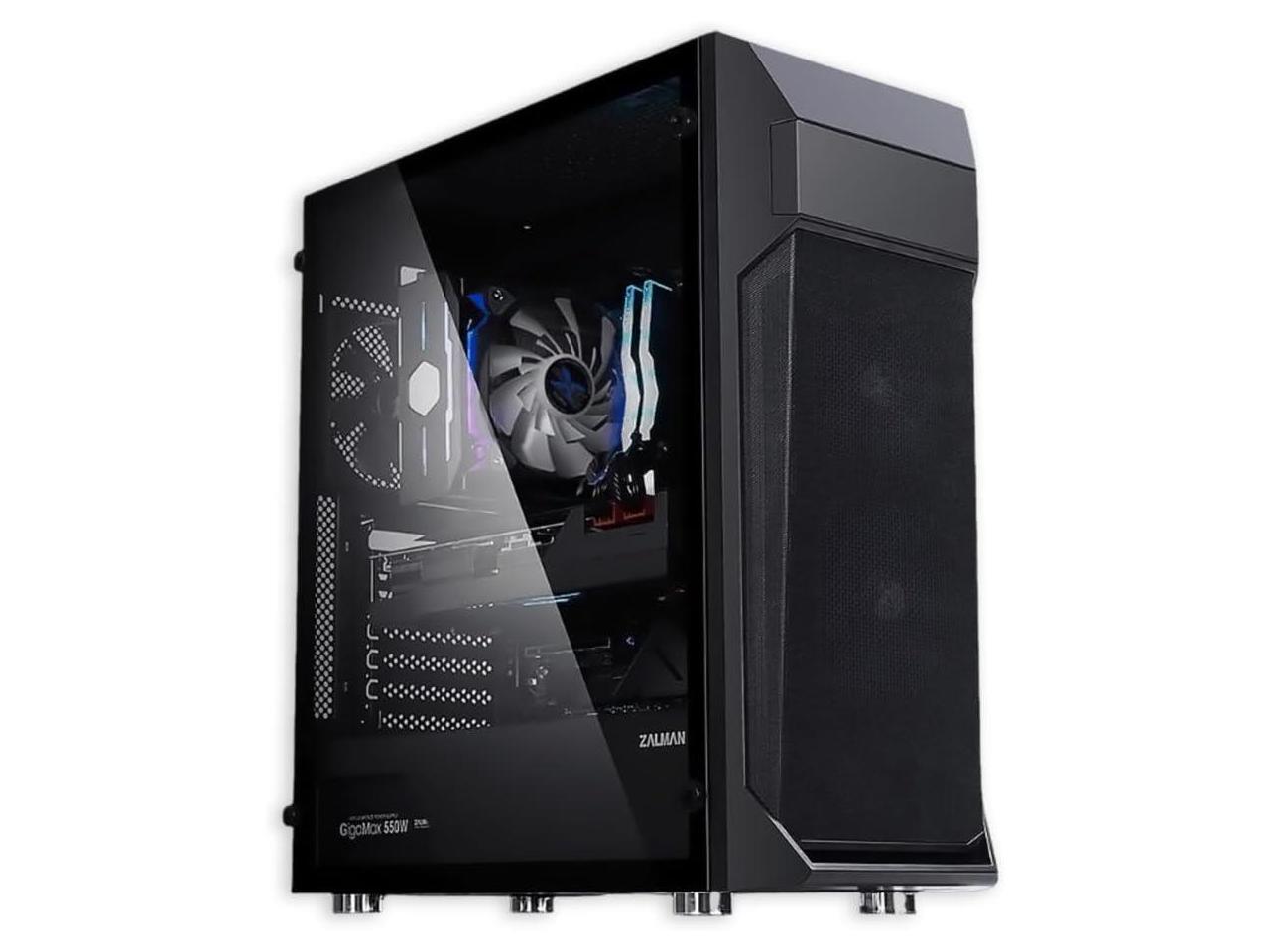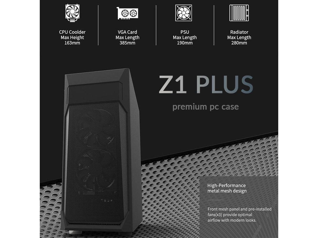Zalman Z1 Plus ATX Mid-Tower Desktop PC Case, 3 x 120mm Fans Pre-Installed, 5.25" ODD Support, High Airflow Mesh Front Panel, Tempered Glass Side Panel