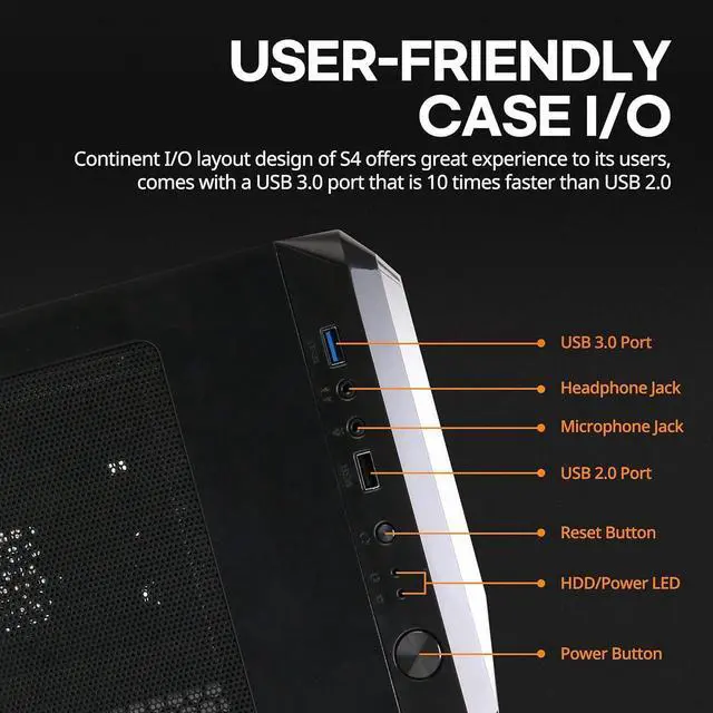 The Zalman S4 ATX Mid Tower PC Case is designed for builders who demand versatility, performance, and style. With its spacious interior, the S4 accommodates a variety of PC components, making custom builds and upgrades effortless. Its sleek design houses two pre-installed 120mm Zalman Quiet Fans, delivering optimal airflow and efficient temperature management while maintaining a whisper-quiet operation. The user-friendly I/O panel features USB 2.0, USB 3.0, and HD Audio ports, ensuring seamless connectivity for all your peripherals. Whether you're building your first PC or upgrading your current setup, the Zalman S4 provides a reliable and refined foundation for your system.