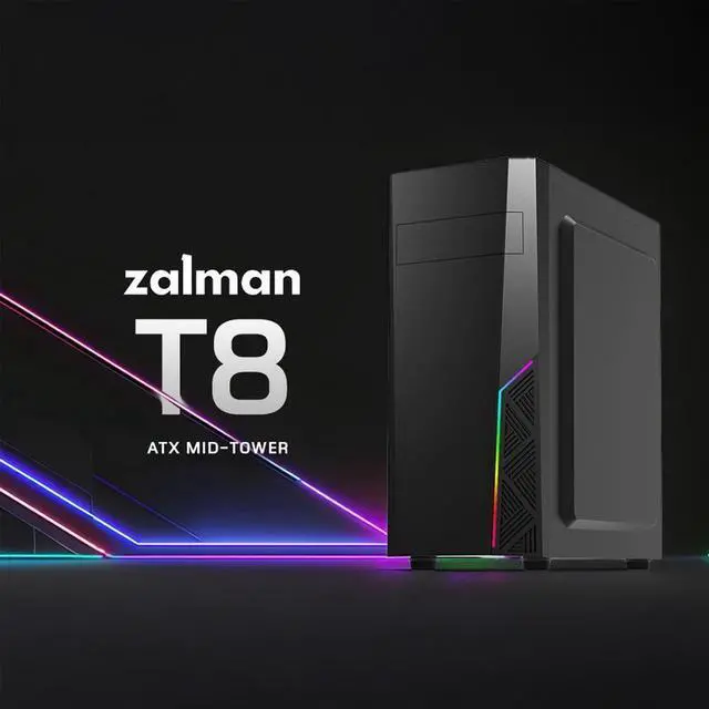 Zalman T8 Compact ATX Mid-Tower PC Case, Spectrum RGB Lighting Strip, Support 5.25 ODD Drive, 120mm Rear Fan Preinstalled, USB 3.0, Gaming Desktop Computer Chassis, Black
