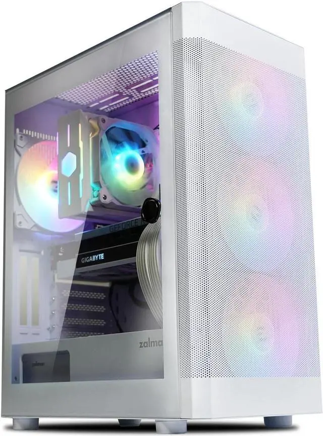 Introducing the new Zalman I4 TG Airflow PC case - Its full mesh front panel and four 140mm pre-installed rainbow led high airflow fans guarantee superior cooling performance. The adjustable anti-sag GPU support bracket and vertical mount support keep your graphics card secure and stylish. Enjoy tool-less installation and easy access with the top-mounted I/O panel featuring audio-in/out, USB 3.0, and USB 2.0 ports. Upgrade your build with the Zalman I4 for unmatched cooling efficiency and convenience.