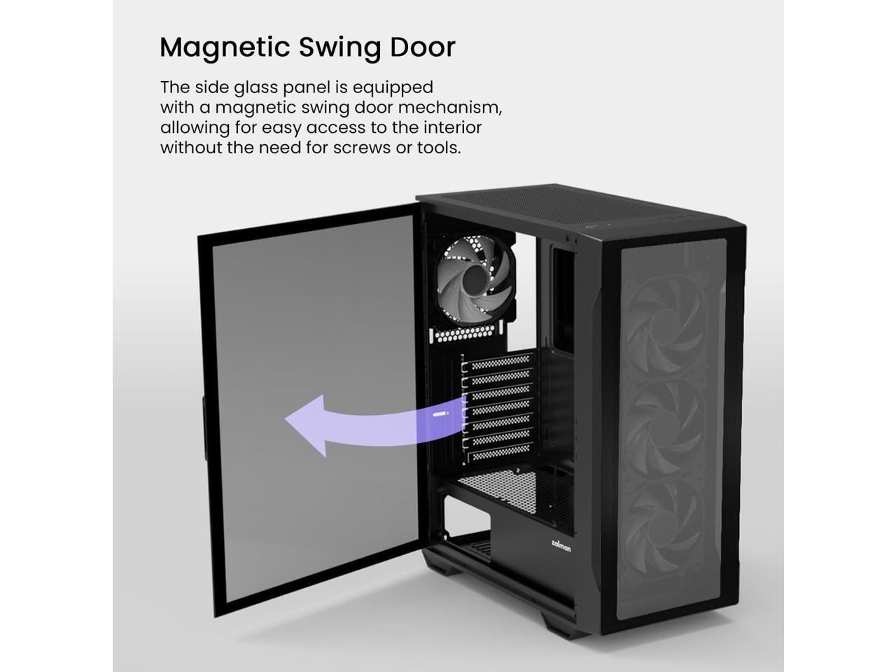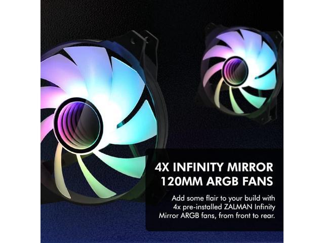 Zalman i3 NEO TG ATX Gaming PC Case, Includes 4 x 120mm Infinity Mirror ARGB Fans, Tempered Glass Front & Side Panel, Premium Mid-Tower Chassis, Black