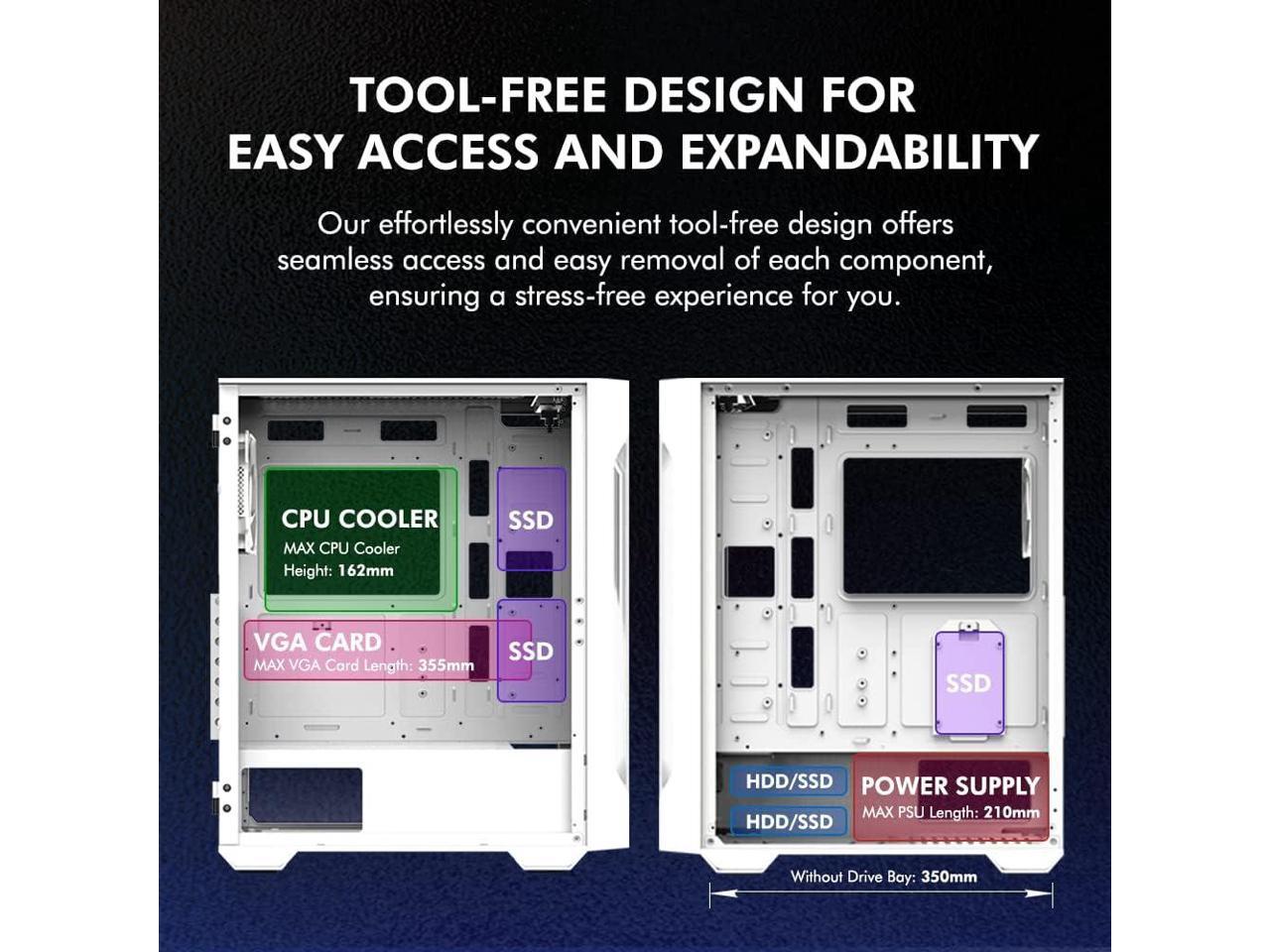 - Offers a Spacious Interior, facilitating effortless PC building and component installation