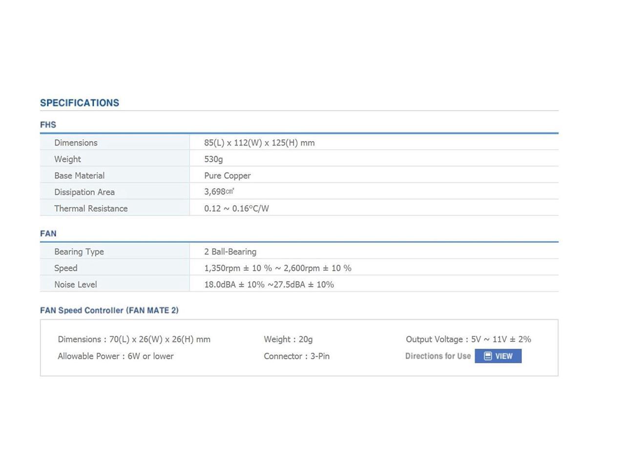 Dimension: 85mm(L) x 112mm(W) x 125mm(H), Weight: 530g, Material: Pure Copper, Fan Bearing: ball-bearing