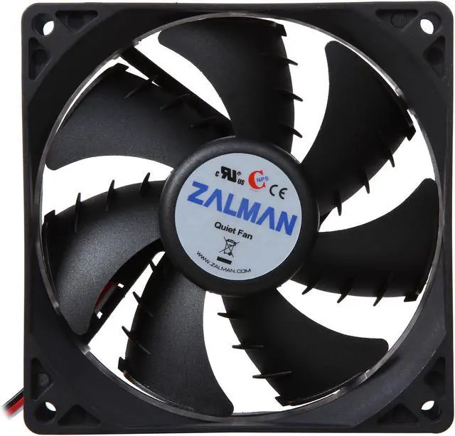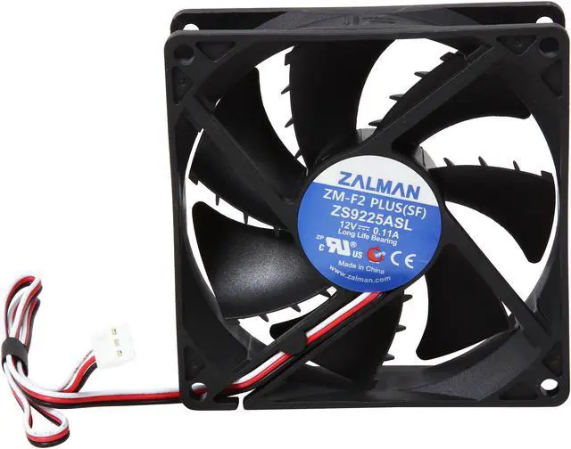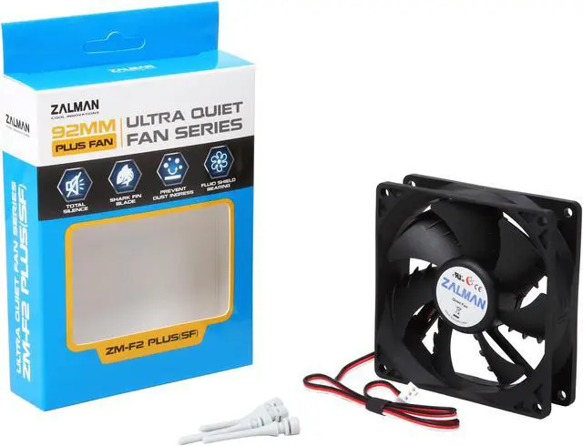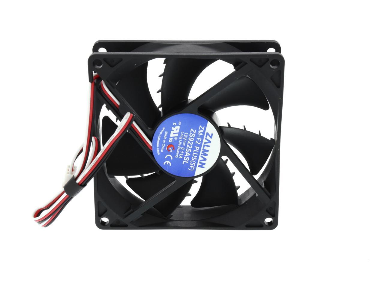 Zalman Ultra Quiet Fan Series F1 Plus (SF) 92mm case fan w/ Shark-fin blade, Long Life (EBR) bearing, minimal noise and vibration, comes with silicon mounting pins.