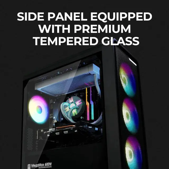 Sliding tempered glass side panel: Provides a sleek and modern look while allowing easy access to internal components for maintenance or customization.