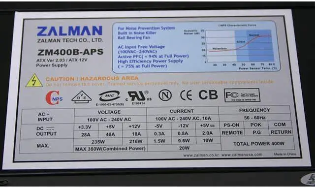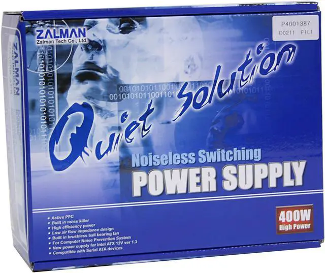 With the goal of enhancing the computing environment, all Zalman Tech products are noise-free. This product is a noise-free 400W ATX (version 2.03)/ATX12V power supply supporting Intel Pentium 4 and AMD CPUs.