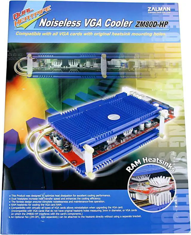 This product was designed to optimize heat dissipation for excellent cooling performance Dual heatpipes increase heat transfer speed and enhance the cooling efficiency The fan-less design ensures complete noiselessness and maintenance-free operation RAM heatsinks for cooling the VGA RAM