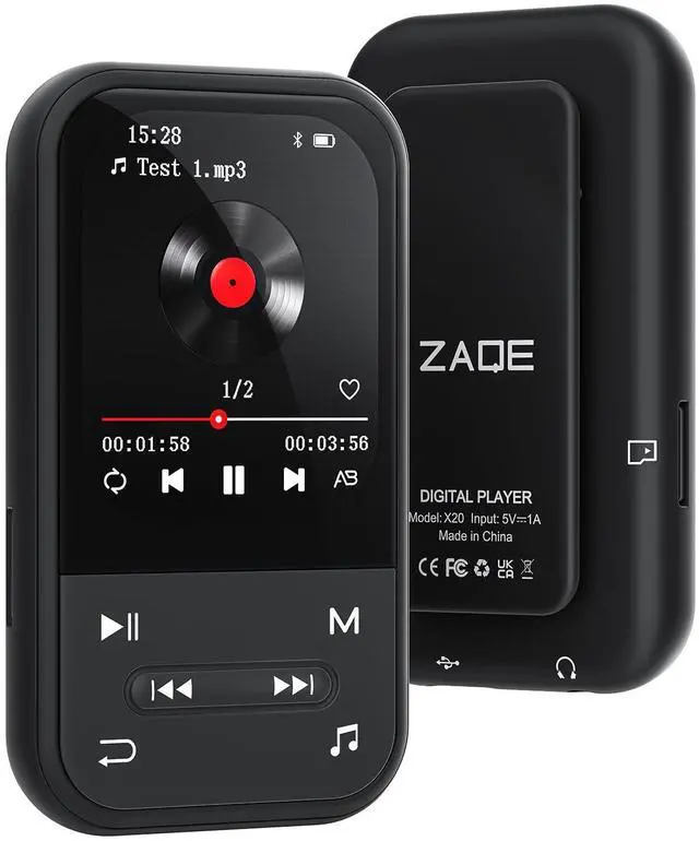 MP3 Player - Clip MP3 Player with Bluetooth 5.3, Portable Music Player with FM Radio, Voice Recorder, Pedometer, Mini Design Ideal for Sport, Earphones Included
