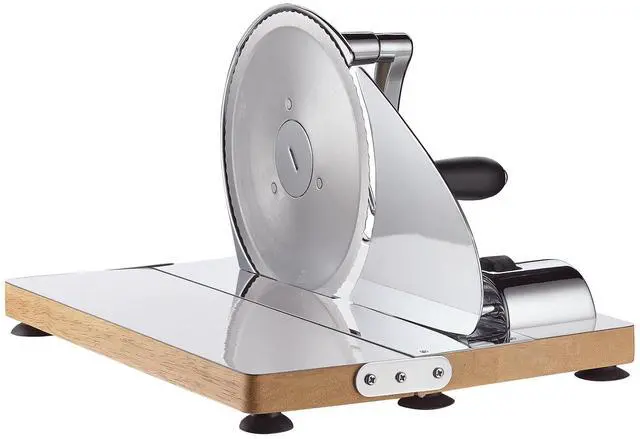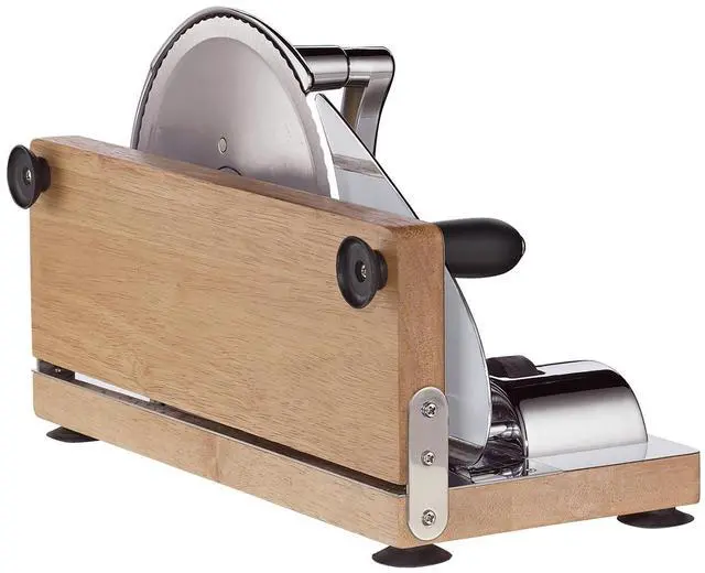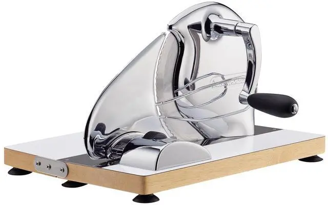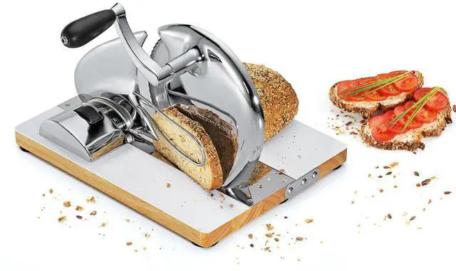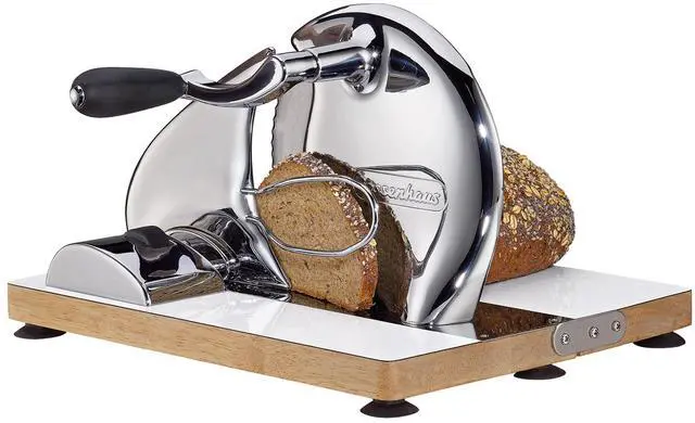 Bring back the charm of old-school craftsmanship with the Zassenhaus Vintage Bread Slicer in chrome. This manual hand crank slicer features a sharp circular blade, adjustable thickness, and a sleek chrome finish. Great for slicing all kinds of bread without electricity. Designed with precision in Germany.