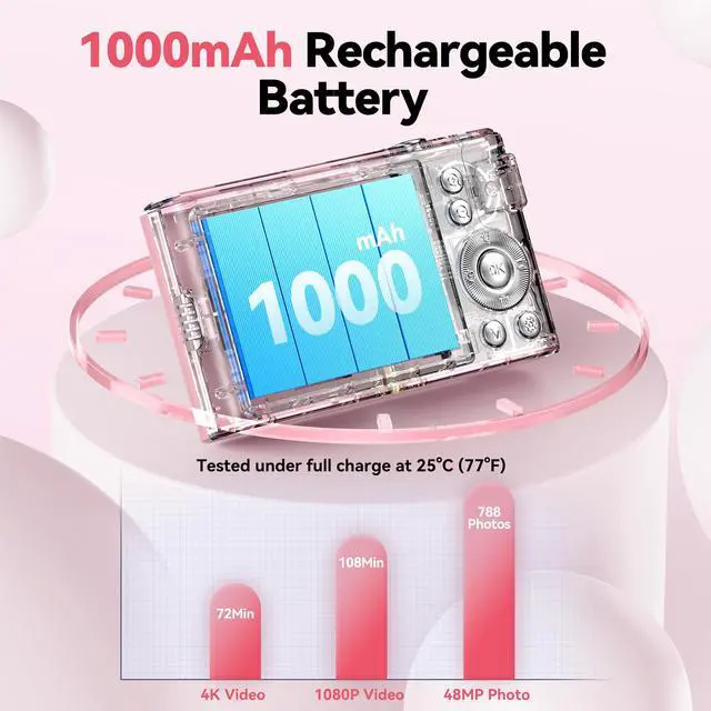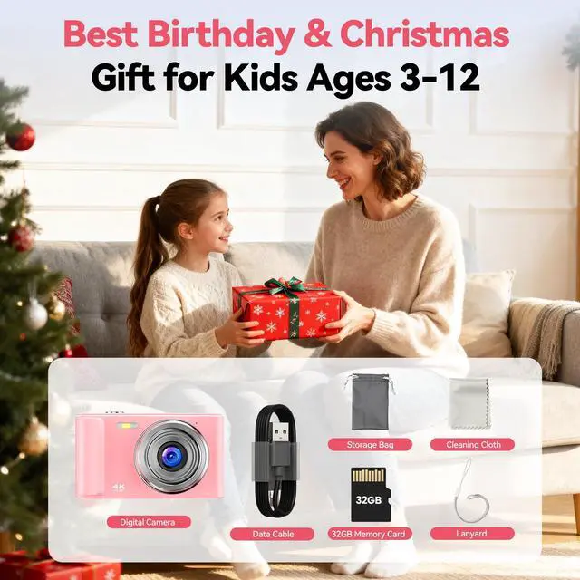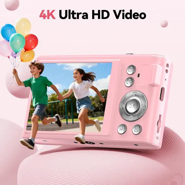 Stylish Pink 4K Digital Camera for Girls & Teens