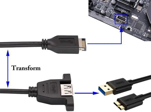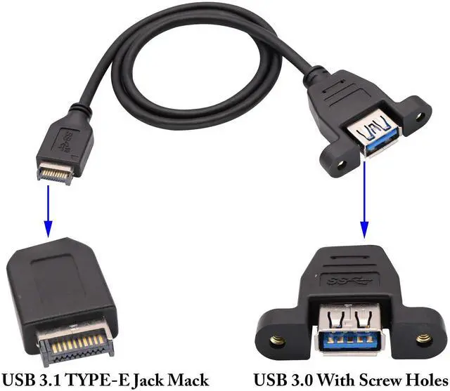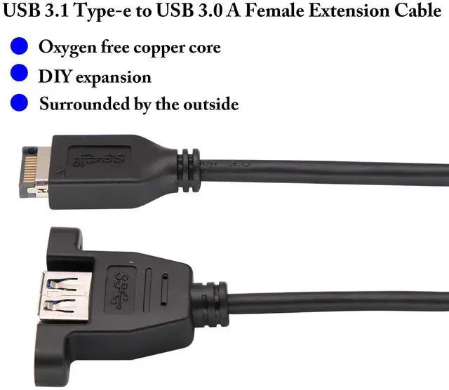 Size:Length(0.5M/1.6ft) Colour:(Black) Package Quantity:(1pack) :USB3.1 to Type-A Female USB 3.1 Front Panel Header to USB 3.0 Type-A Female Extension Cord Cable 1.6ft/50cm Panel Mount Type USB 3.1 require a different front panel header than USB 3.0. The USB 3.1 port interface is using the USB 3.0 pin set and more. Designed to be backwards compatible. There are no official release of the specs for the USB 3.1 header yet (as of this writing), But first motherboard with this is the ASUS ROG MAXIMUS IX FORMULA,STRIX Z270I/Z270G etc.