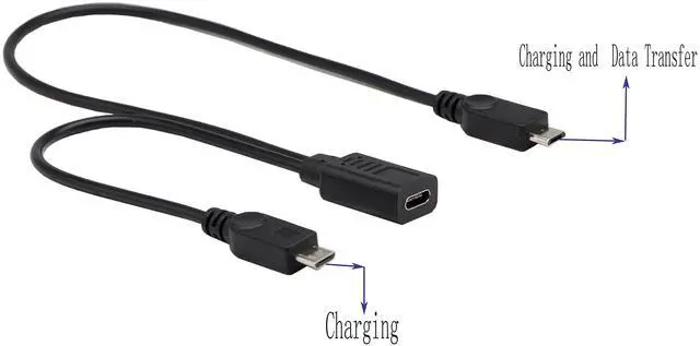 The USB Type C to Micro USB extension Cable is a quality, Simultaneously charging and data transfer for your 2 micro USB devices by connecting with your original type-c cable Short cable it is only charge,not data transmission. long cable can Simultaneously charge and data transfer.