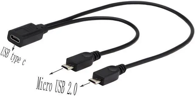 Size: 30CM Color: Black Features:1USB type C female to 2 micro USB male