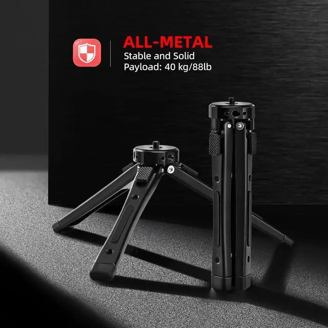 Zeadio Heavy Duty Metal Camera Tripod Stand - Universal Small Table Tripod for Camera, Gimbal, Action Cam, Camcorder, Microphone, LED Light, etc(40kg/88lb Load)