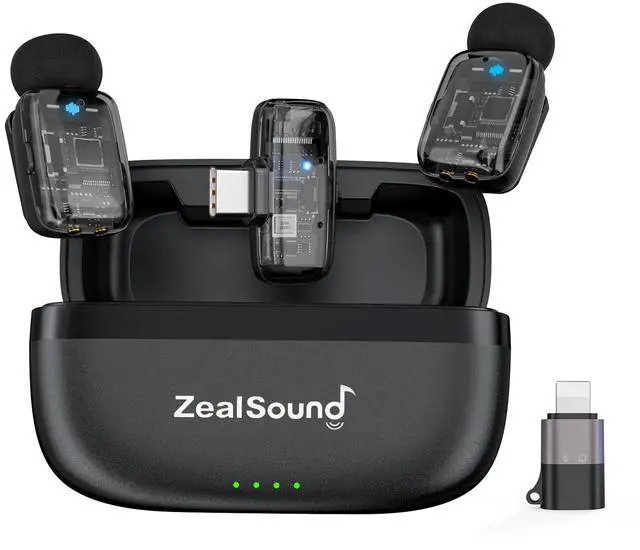 Meet the Transparent Mini Wireless Lavalier Microphone the ultimate all-in-one audio solution for creators, professionals, and everyday storytellers. Designed with a futuristic transparent shell that showcases its inner tech, this featherlight clip-on mic (just 5g / 0.18oz) combines portability, durability, and modern style. Slip it into your pocket, clip it onto your collar, or attach it to a tie or hatthe secure mini design makes it easy to record anytime, anywhere without worrying about bulky gear. Pro-Level Controls at Your Fingertips Take control of your audio instantly, no apps or complicated setups required. A simple double-tap mutes or unmutes your micperfect for interviews, meetings, or live events. Triple-tap to activate echo/reverb effects, adding depth for karaoke, livestreams, or creative voiceovers. The receiver gives you three quick volume levels, confirmed by LED flashes, so you can adapt sound on the fly for street vlogs, podcasts, classroom lectures, or professional presentations. Studio-Grade Sound, Anywhere Capture crystal-clear 48kHz/24bit HD audio with a professional omnidirectional pickup pattern that records voices from every angle. Whether youre streaming, podcasting, recording interviews, ASMR, or live performances, your voice stays natural and balanced. Advanced noise reduction filters out unwanted distractions like traffic, fans, or typing, while high SPL handling (up to 115dB) keeps audio distortion-free even in loud environments such as concerts, events, or outdoor festivals. Advanced Noise Cancellation Stay heard in any environment with intelligent noise-canceling technology. By default, the mic activates ANC (blue LED), removing background noise from crowded streets, classrooms, offices, or outdoor spaces. One quick press switches to natural mode (green LED), keeping ambient sound for a more authentic recording. Whether youre teaching, streaming gameplay, recording music, or filming content outdoors, youll enjoy clean, front-focused audio that keeps your voice at the center. Plug-and-Play Convenience No pairing, no Bluetooth, no hassle. Simply plug in the receiver and start recording. The kit includes both a USB-C receiver and a Lightning adapter, making it compatible with iPhone 15/16, older iPhones, iPads, Android phones, tablets, and even OTG-enabled PCs. Two transmitters allow you to record solo or with a partner, ideal for co-hosted podcasts, interviews, livestreams, online courses, or collaborative content. All-Day Recording Power & Long-Range Freedom Enjoy up to 6 hours of continuous use per mic, with an additional 27 hours stored in the pocket-sized charging casefully recharging both mics in just 40 minutes. The stable 2.4GHz wireless connection provides smooth, lag-free audio up to 325ft (100m). From busy conferences to outdoor vlogs, sports broadcasts, church services, and concerts, youll stay connected with reliable, drop-free sound all day long. Versatile for Every Scenario This dual wireless lavalier adapts to every recording needsolo or two-person setups. Perfect for TikTok, YouTube, Instagram Reels, and podcasts, as well as online classes, Zoom meetings, corporate training, and public speaking. Add echo for karaoke or livestreaming, record ASMR sessions, film documentaries, or capture cooking
