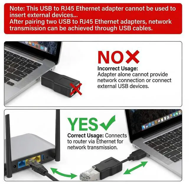 Applicable Equipment: Not suitable for USB 1.1 (printer style USB) It cannot allow you to connect the network directly from the router to the laptop! Not suitable for electronic musical instruments